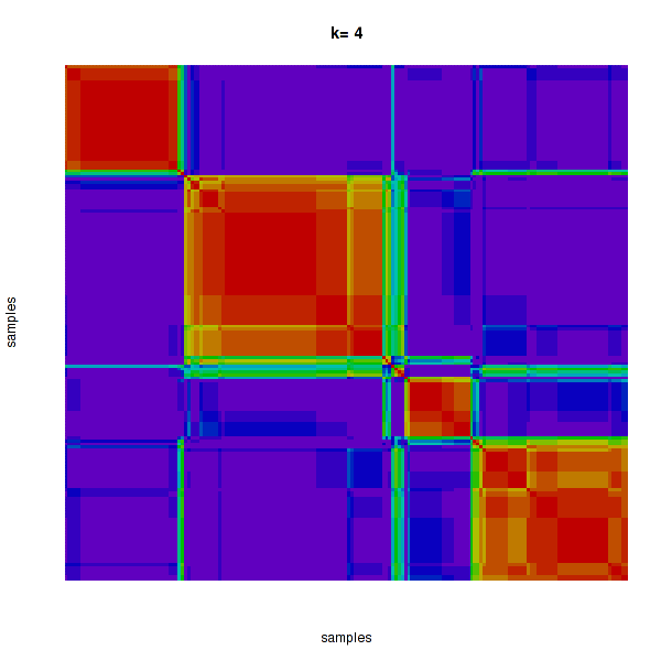 Figure 4. Get High-res Image The consensus matrix after clustering shows 4 clusters with limited overlap between clusters.