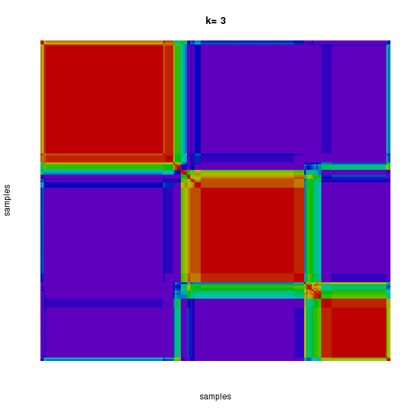 Figure 4. Get High-res Image The consensus matrix after clustering shows 3 clusters with limited overlap between clusters.