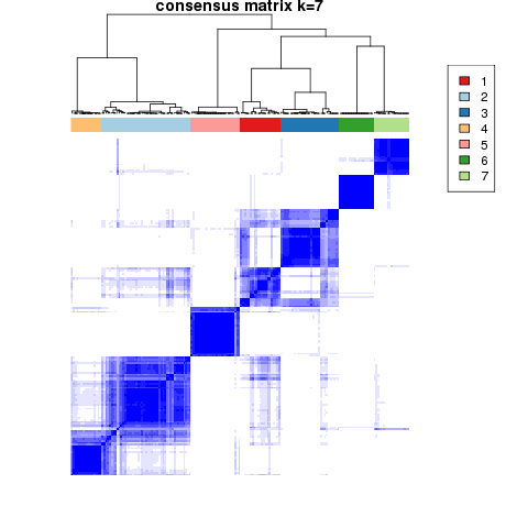 Figure 4. Get High-res Image The consensus matrix after clustering shows 7 clusters with limited overlap between clusters.