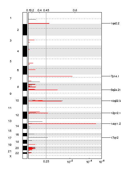 | 10q22.3 | 0.032454 | 0.032454 | chr10:75732002-82901999 | 43 |