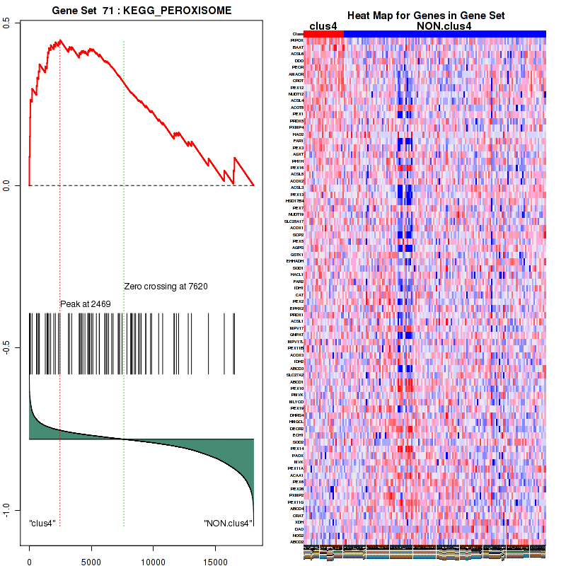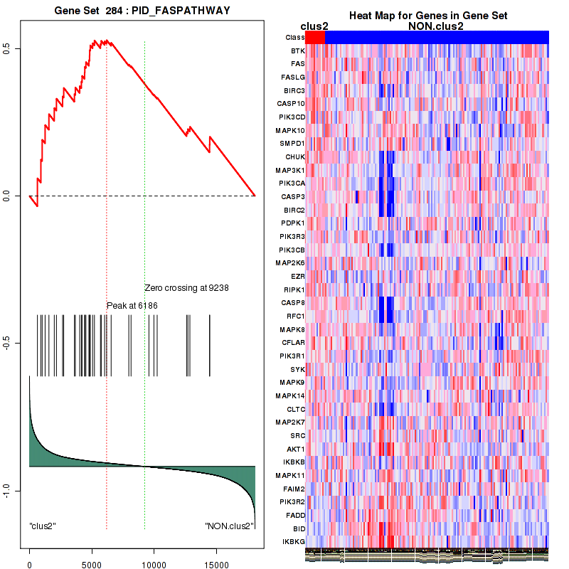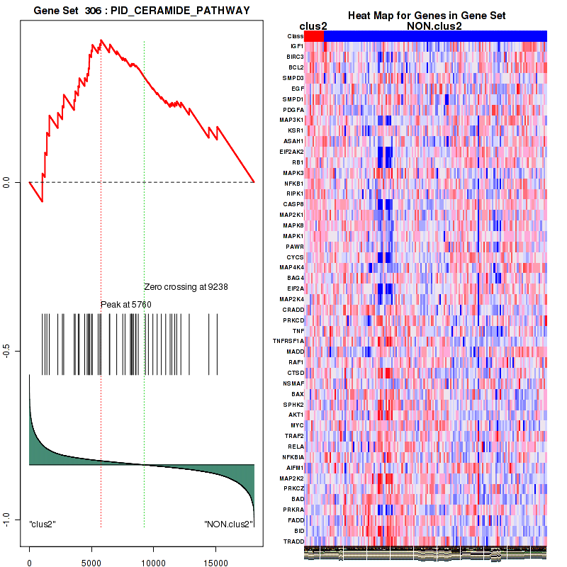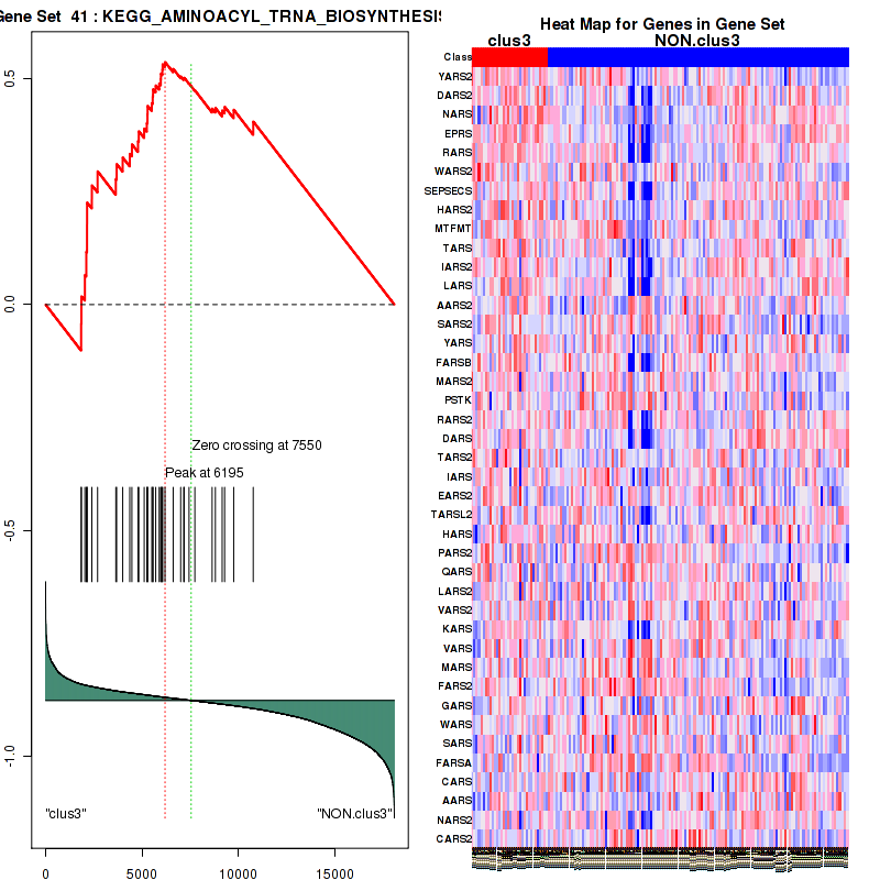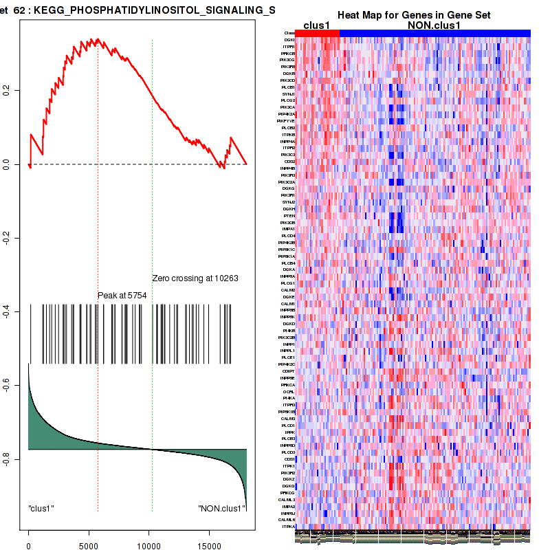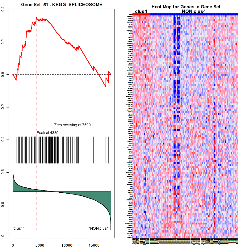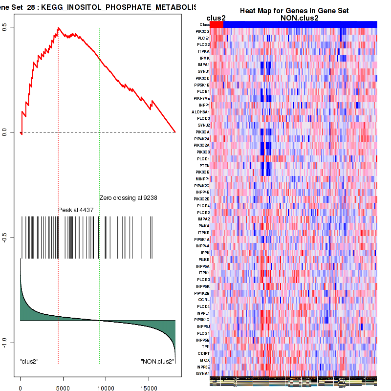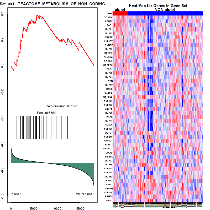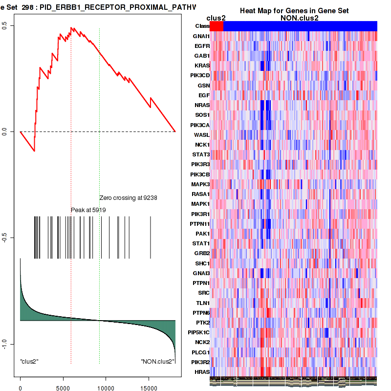 Table S1. Get Full Table This table shows a Running Enrichment Score (RES) of each gene in this pathway, that is, the enrichment score at this point in the ranked list of genes. All genes are ranked by Signal-to-Noise (S2N), a measure of similarity as default and are used to obtain ES matrix of all genes. In this way, GSEA tool uses expression pattern of not only overlapped genes but also not-overlapped genes to produce ES matrix.