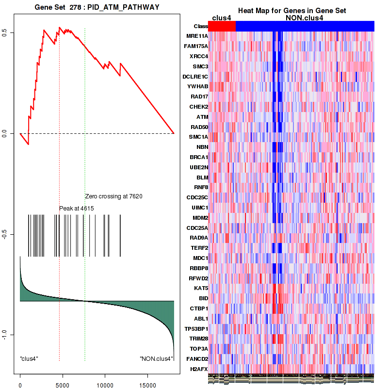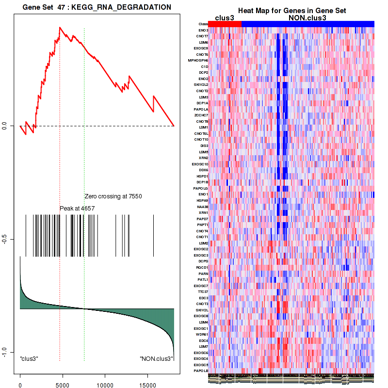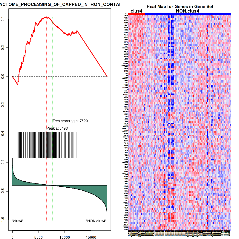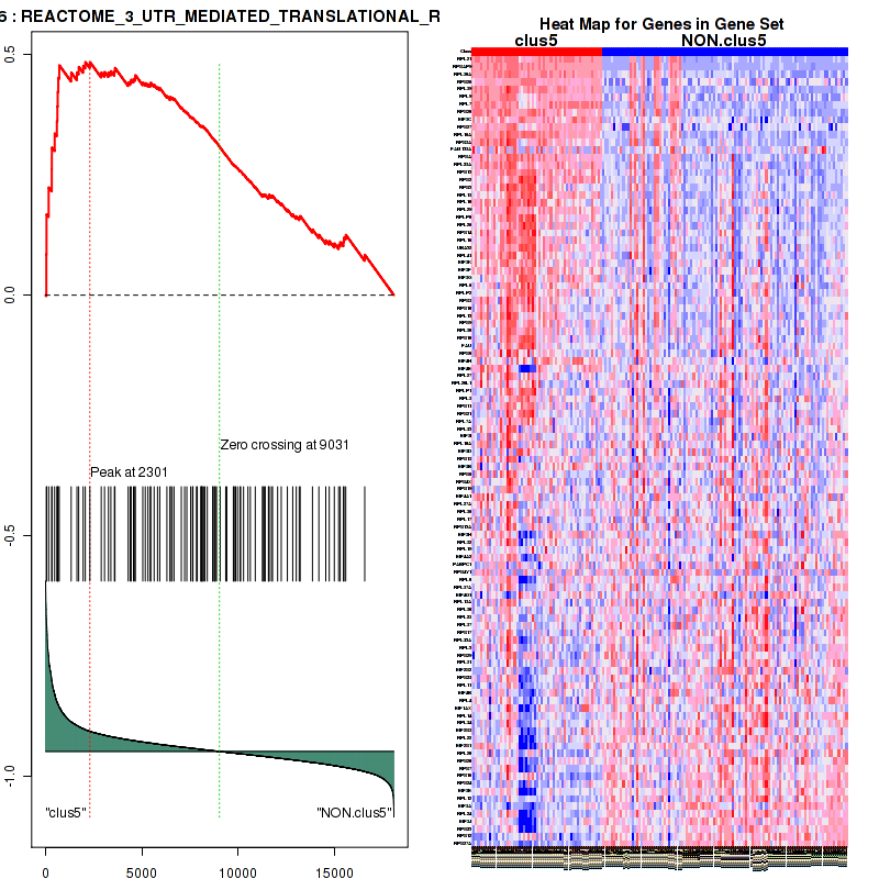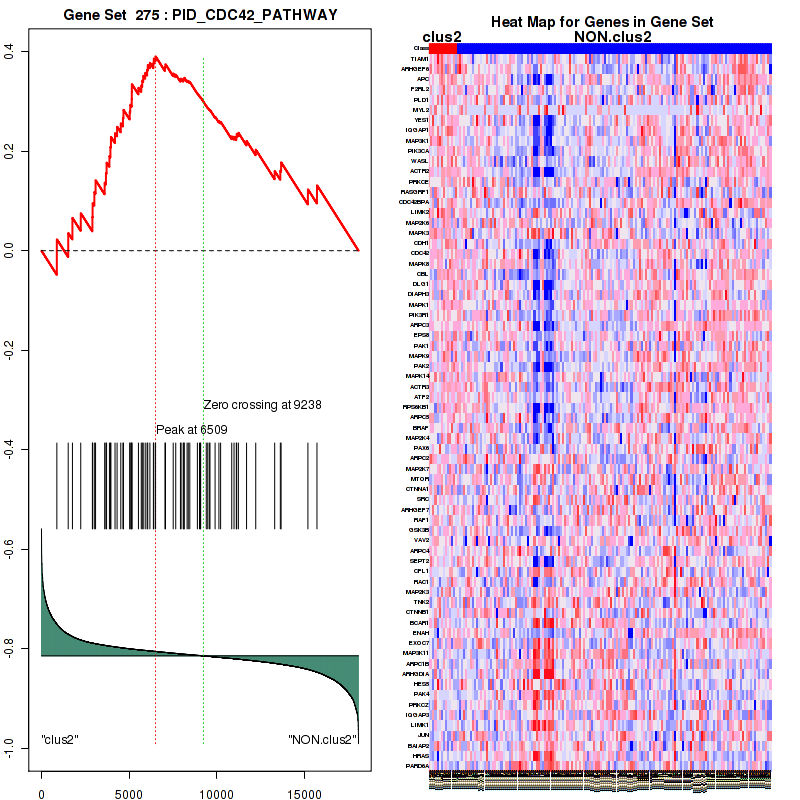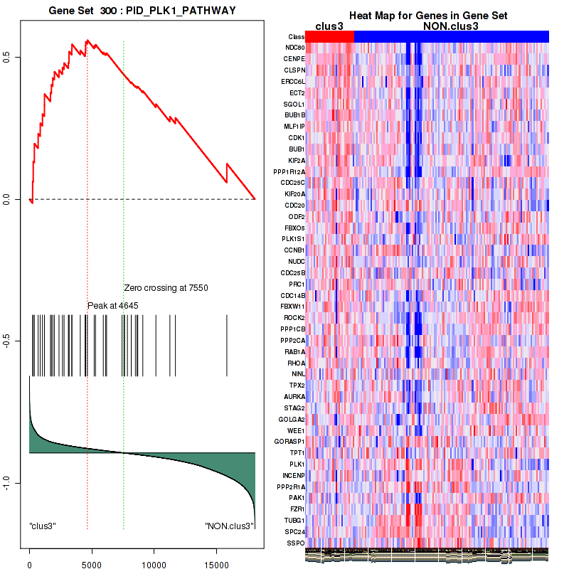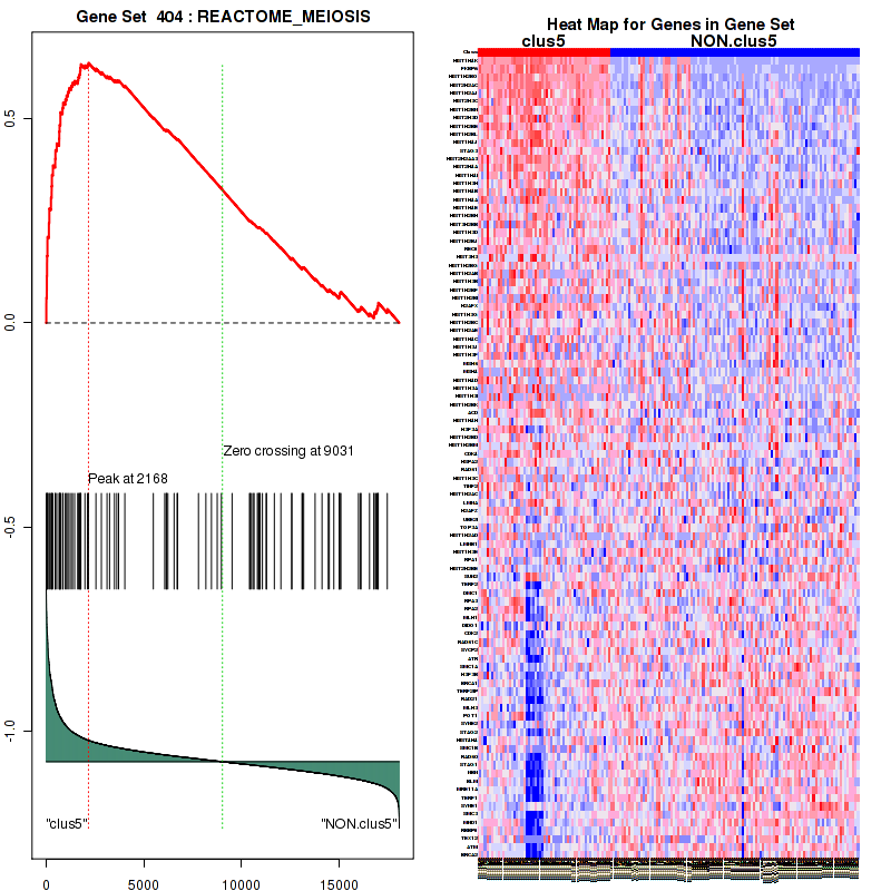 Table 3. Get Full Table This table shows top 10 pathways which are significantly enriched in cluster clus1. It displays only significant gene sets satisfying nom.p.val.threshold (-1), fwer.p.val.threshold (-1) , fdr.q.val.threshold (0.25) and the default table is sorted by Normalized Enrichment Score (NES). Further details on NES statistics, please visit The Broad GSEA website.