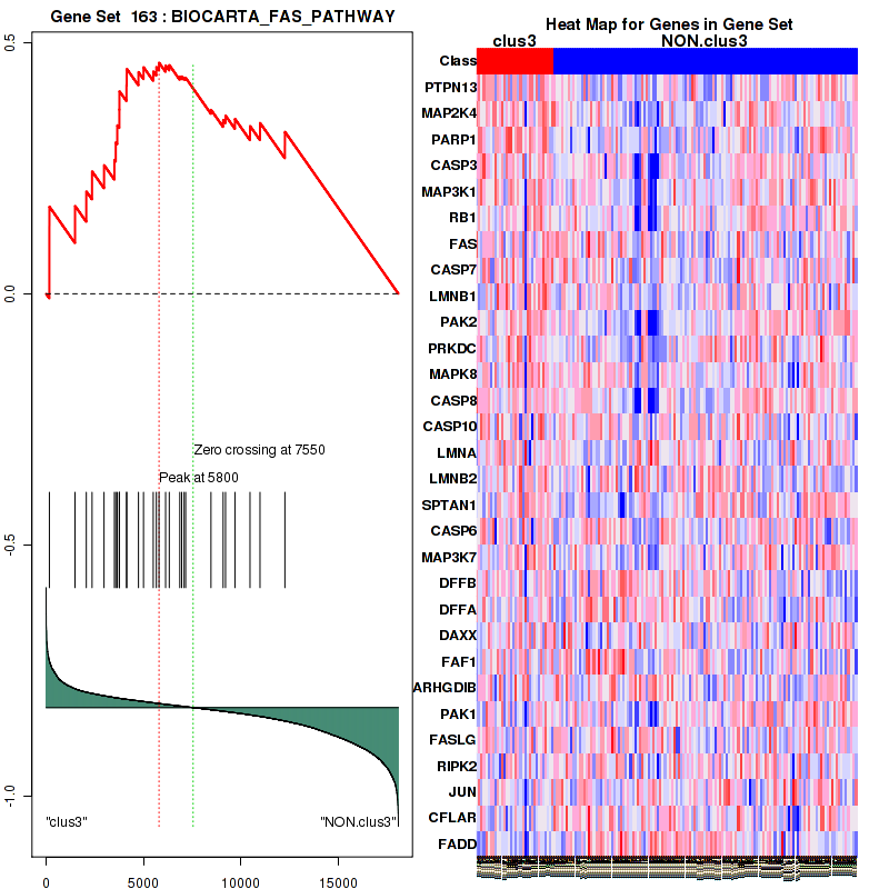For the expression subtypes of 18106 genes in 167 samples, GSEA found enriched gene sets in each cluster using 166 gene sets in MSigDB canonical pathways. Top enriched gene sets are listed as below.