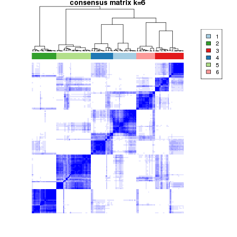 Figure 4. Get High-res Image The consensus matrix after clustering shows 6 clusters with limited overlap between clusters.