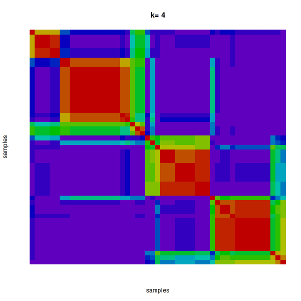 Figure 4. Get High-res Image The consensus matrix after clustering shows 4 clusters with limited overlap between clusters.