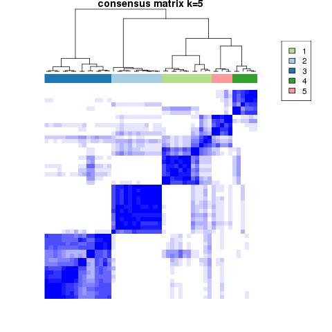 Figure 4. Get High-res Image The consensus matrix after clustering shows 5 clusters with limited overlap between clusters.