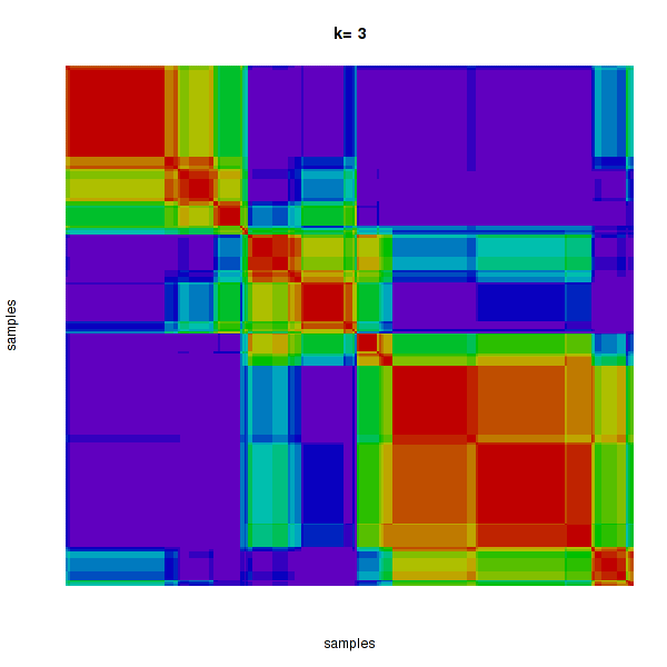 Figure 4. Get High-res Image The consensus matrix after clustering shows 3 clusters with limited overlap between clusters.