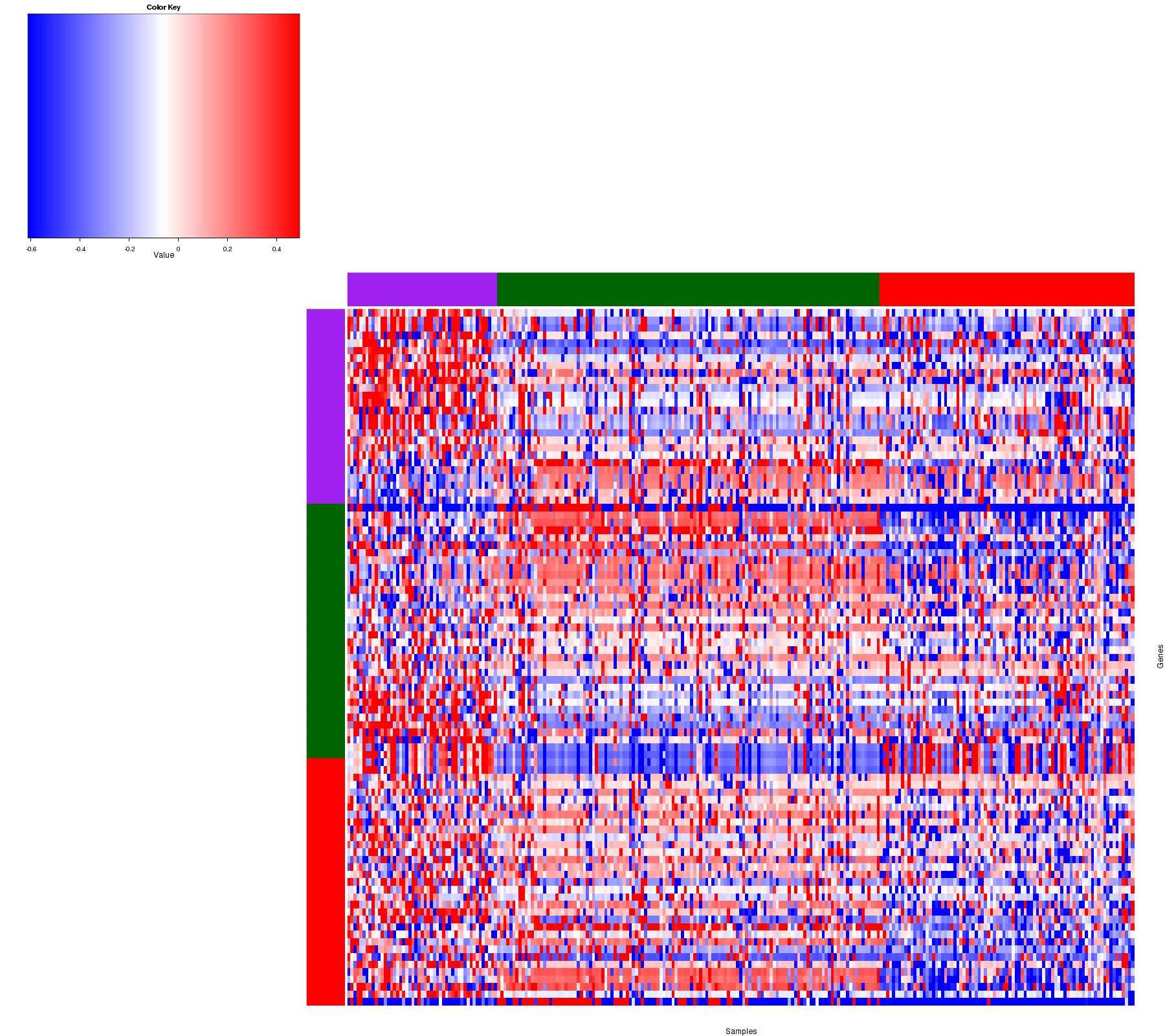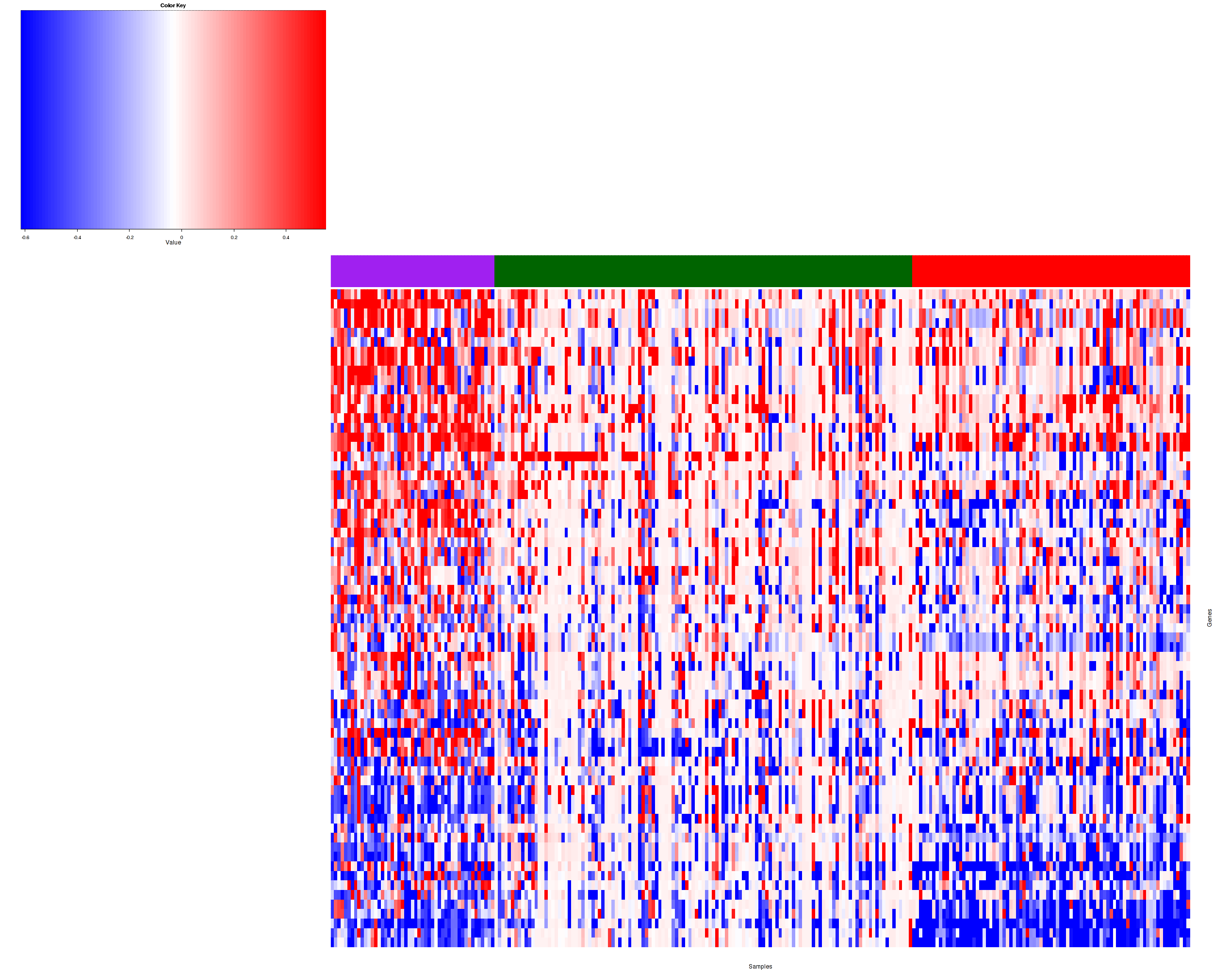 Figure 1. Get High-res Image Samples were separated into 3 clusters. Shown are 257 samples and 93 marker focal events. The color bar of the row indicates the marker focal events for the corresponding cluster.