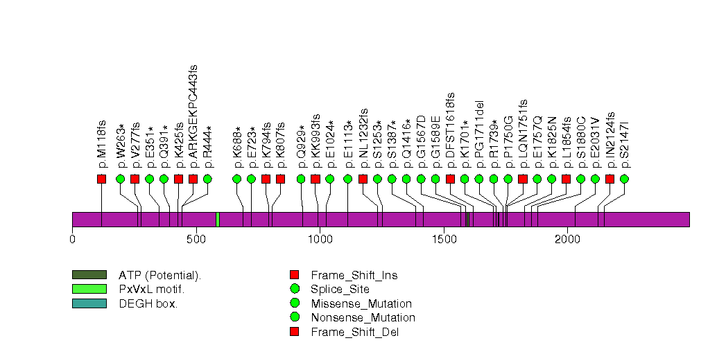 Figure S3. This figure depicts the distribution of mutations and mutation types across the ATRX significant gene.