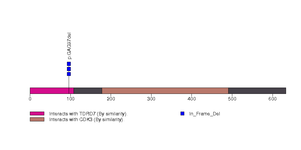 Figure S10. This figure depicts the distribution of mutations and mutation types across the CABLES1 significant gene.