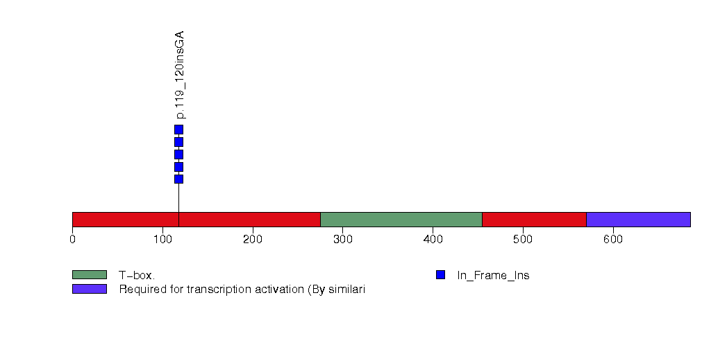 Figure S7. This figure depicts the distribution of mutations and mutation types across the EOMES significant gene.