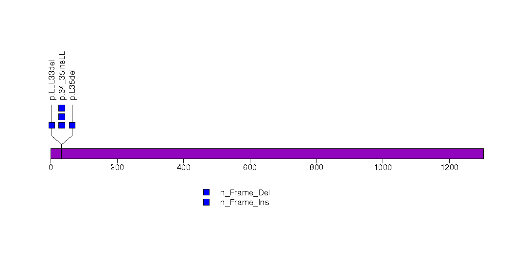 Figure S4. This figure depicts the distribution of mutations and mutation types across the NUMBL significant gene.