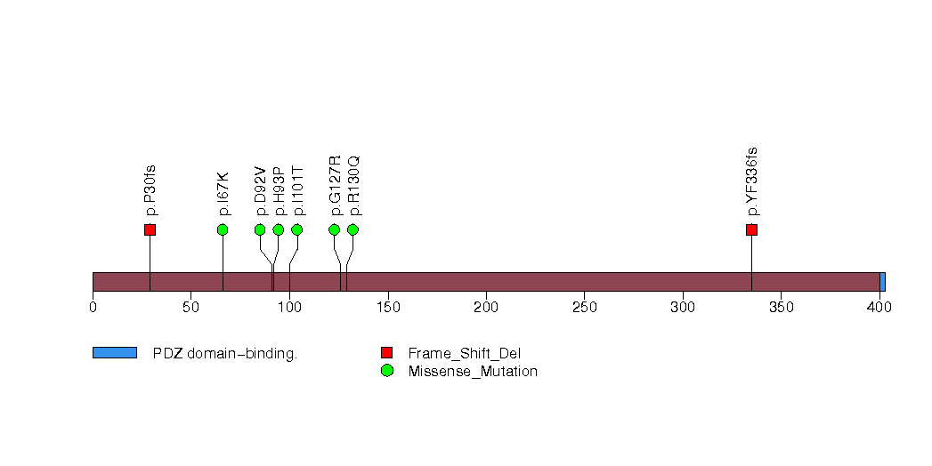 Figure S8. This figure depicts the distribution of mutations and mutation types across the PTEN significant gene.