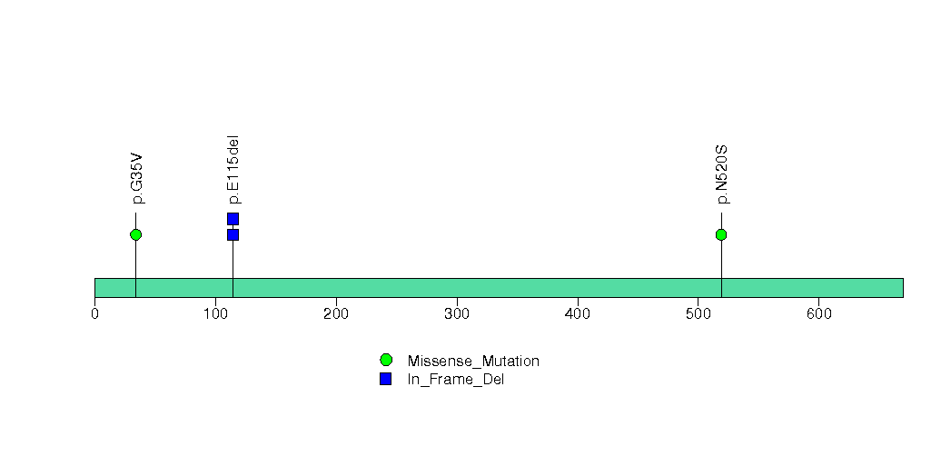 Figure S2. This figure depicts the distribution of mutations and mutation types across the RB1 significant gene.