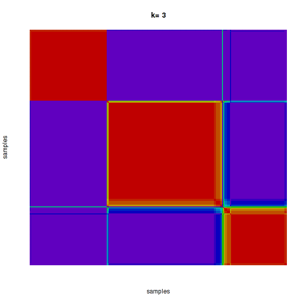 Figure 4. Get High-res Image The consensus matrix after clustering shows 3 clusters with limited overlap between clusters.