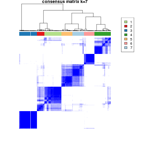 Figure 4. Get High-res Image The consensus matrix after clustering shows 7 clusters with limited overlap between clusters.