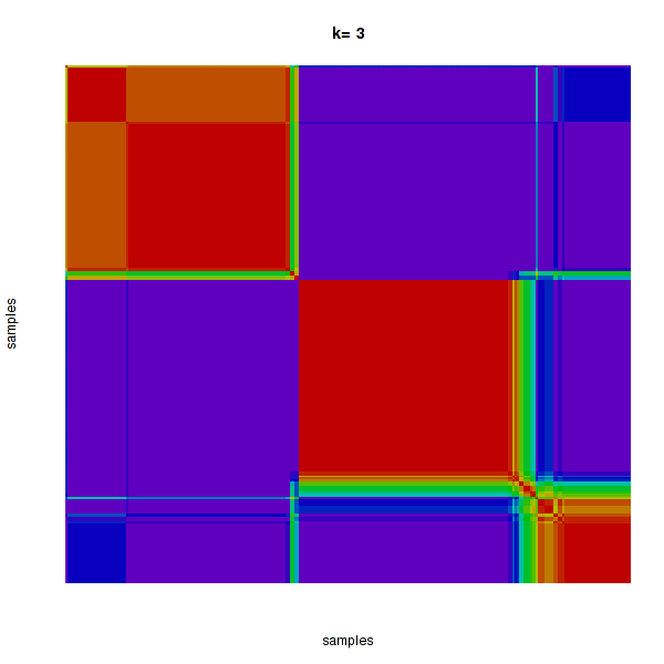 Figure 4.  Get High-res Image The consensus matrix after clustering shows 3 clusters with limited overlap between clusters.