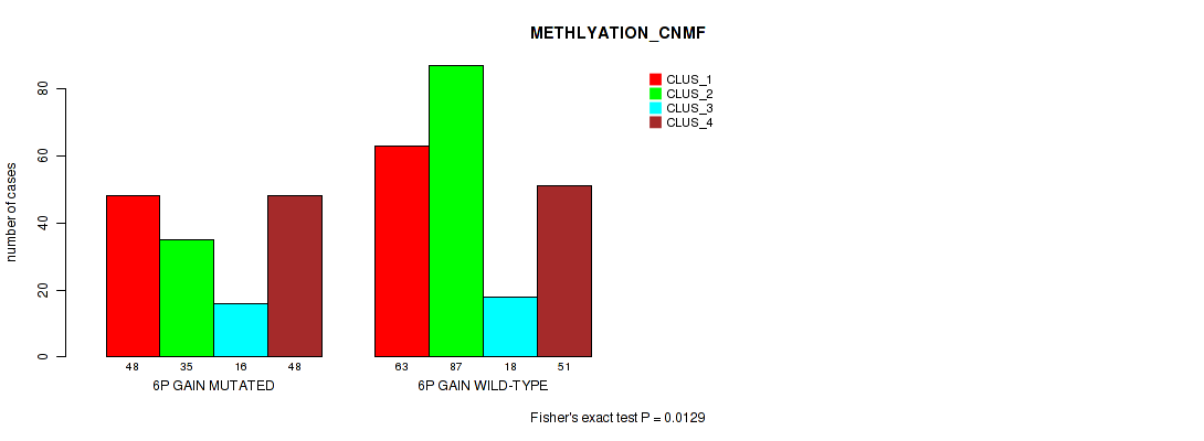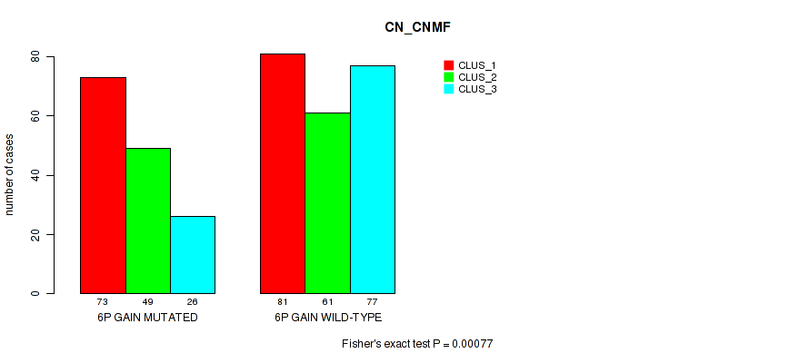 6p gain cnv correlated to 'CN_CNMF', 'METHLYATION_CNMF', 'MRNASEQ_CNMF', 'MRNASEQ_CHIERARCHICAL', 'MIRSEQ_CNMF', 'MIRSEQ_CHIERARCHICAL', 'MIRSEQ_MATURE_CNMF', and 'MIRSEQ_MATURE_CHIERARCHICAL'.