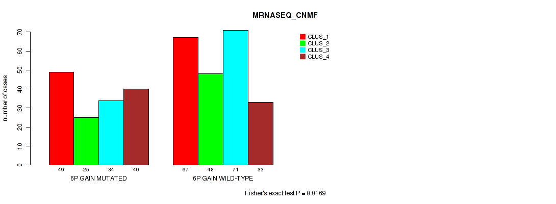6p loss cnv correlated to 'MRNASEQ_CNMF' and 'MIRSEQ_MATURE_CHIERARCHICAL'.
