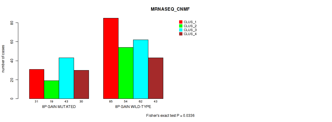 8p gain cnv correlated to 'CN_CNMF', 'MRNASEQ_CNMF', and 'MRNASEQ_CHIERARCHICAL'.