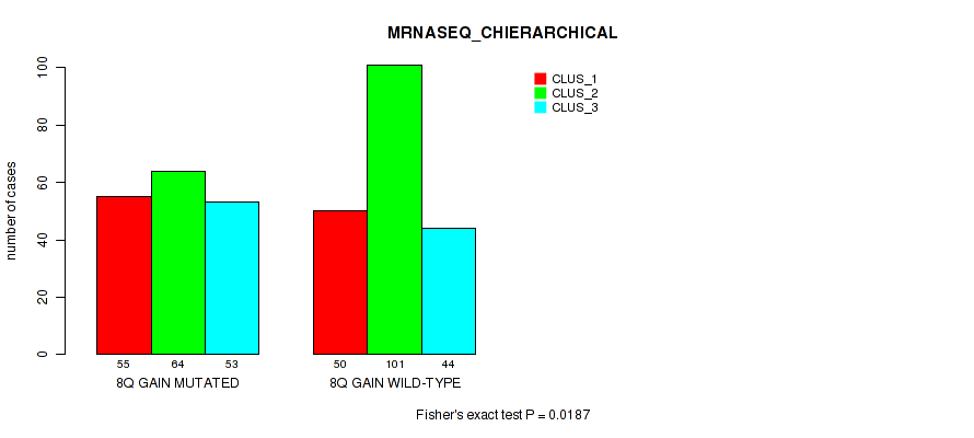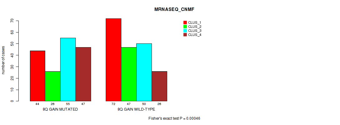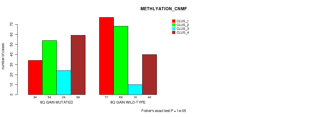 8q gain cnv correlated to 'CN_CNMF', 'METHLYATION_CNMF', 'MRNASEQ_CNMF', and 'MRNASEQ_CHIERARCHICAL'.