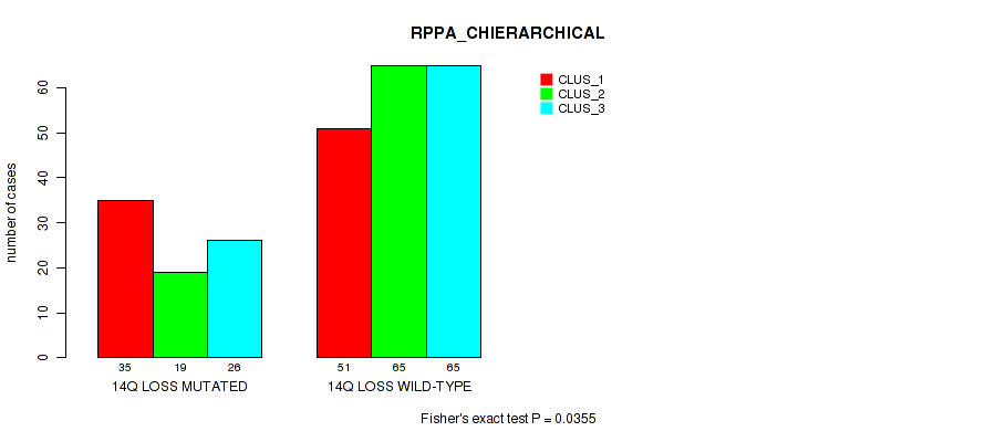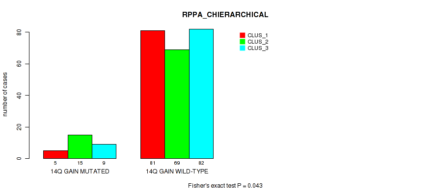 14q gain cnv correlated to 'RPPA_CHIERARCHICAL'.