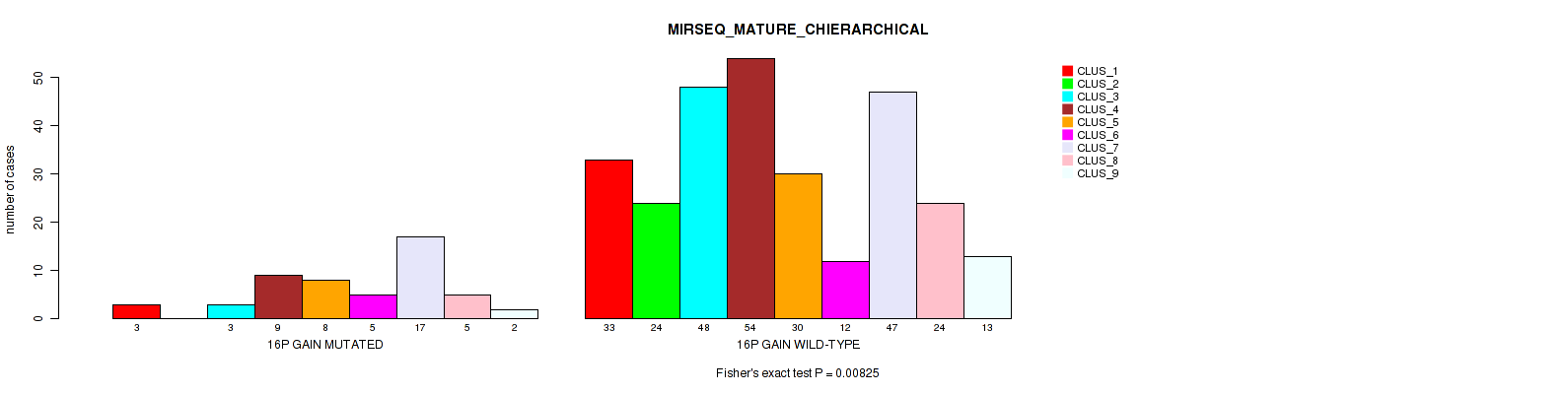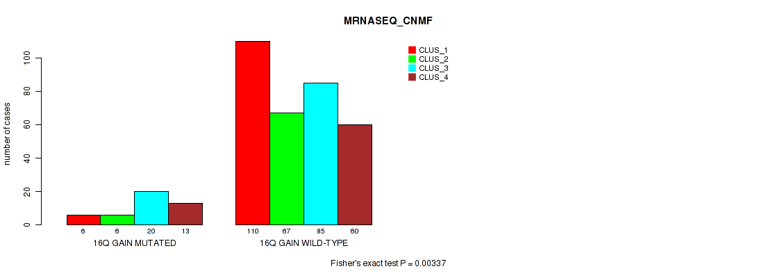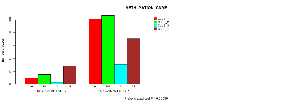 16p gain cnv correlated to 'CN_CNMF', 'METHLYATION_CNMF', 'MRNASEQ_CNMF', and 'MIRSEQ_MATURE_CHIERARCHICAL'.