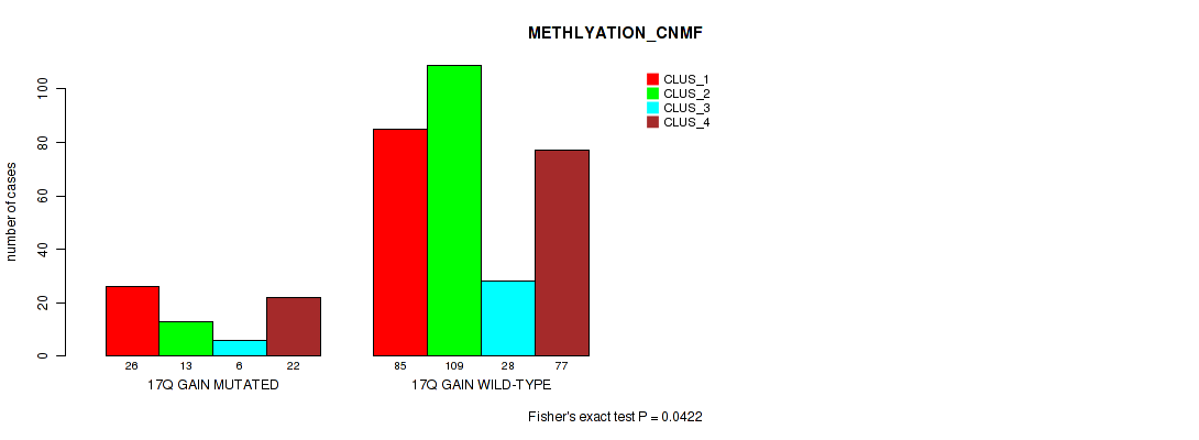 17q gain cnv correlated to 'METHLYATION_CNMF'.