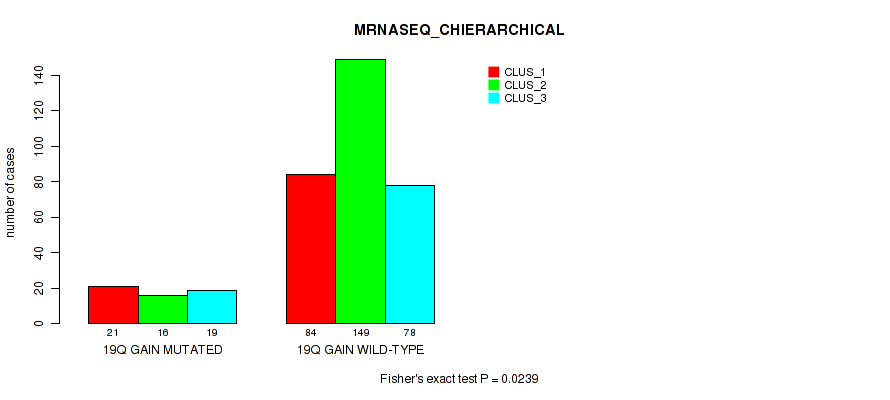 19q gain cnv correlated to 'CN_CNMF', 'MRNASEQ_CNMF', and 'MRNASEQ_CHIERARCHICAL'.