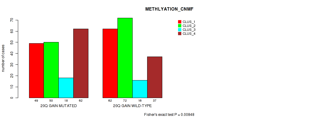 20q gain cnv correlated to 'CN_CNMF', 'METHLYATION_CNMF', 'RPPA_CHIERARCHICAL', and 'MRNASEQ_CHIERARCHICAL'.