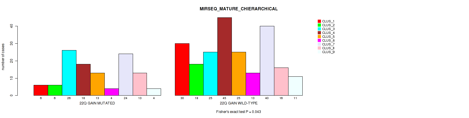 22q gain cnv correlated to 'CN_CNMF' and 'MIRSEQ_MATURE_CHIERARCHICAL'.