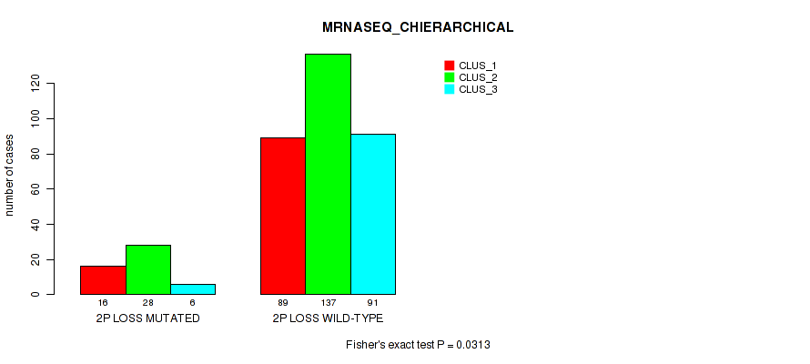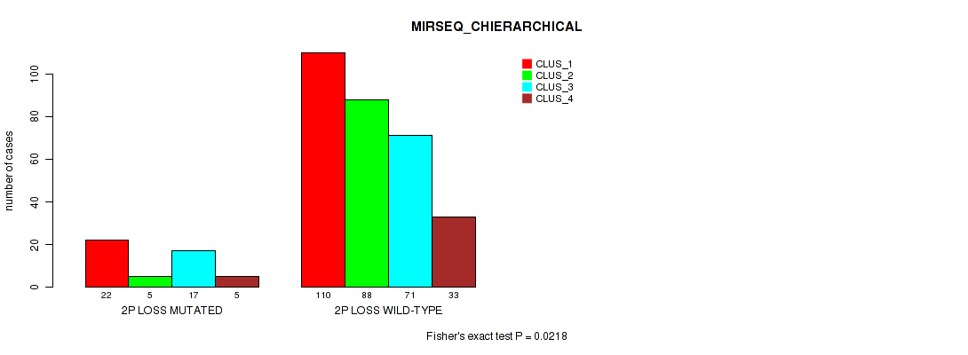 2p loss cnv correlated to 'MRNASEQ_CHIERARCHICAL', 'MIRSEQ_CNMF', and 'MIRSEQ_CHIERARCHICAL'.