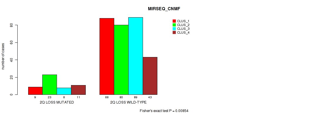 2q loss cnv correlated to 'METHLYATION_CNMF', 'RPPA_CHIERARCHICAL', 'MIRSEQ_CNMF', and 'MIRSEQ_CHIERARCHICAL'.