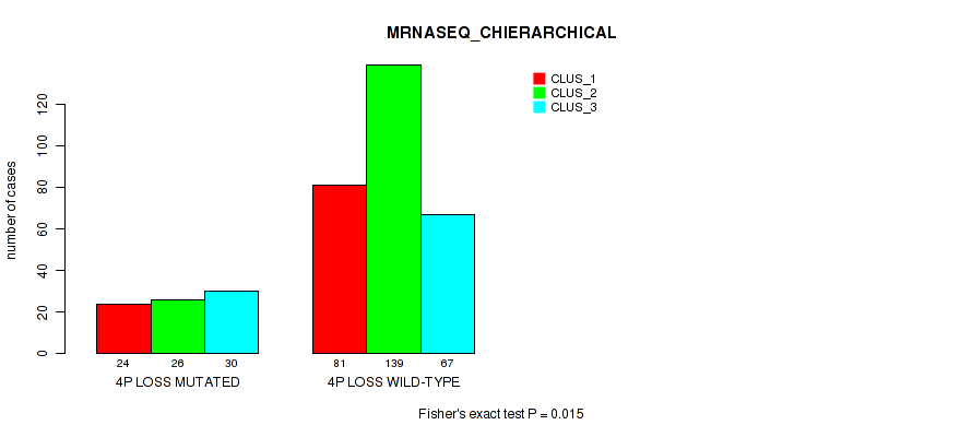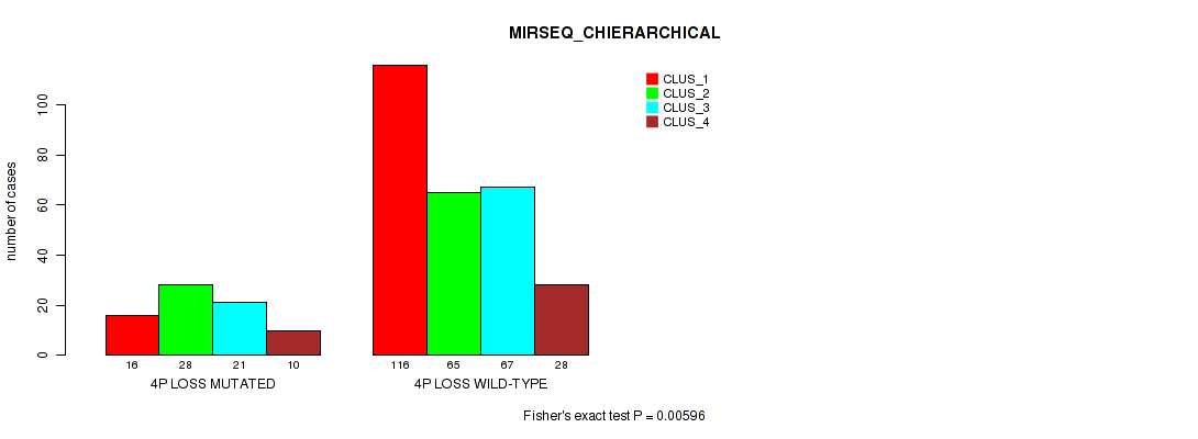 4p loss cnv correlated to 'MRNASEQ_CHIERARCHICAL' and 'MIRSEQ_CHIERARCHICAL'.