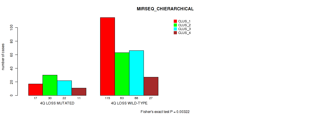 4q loss cnv correlated to 'MRNASEQ_CHIERARCHICAL' and 'MIRSEQ_CHIERARCHICAL'.