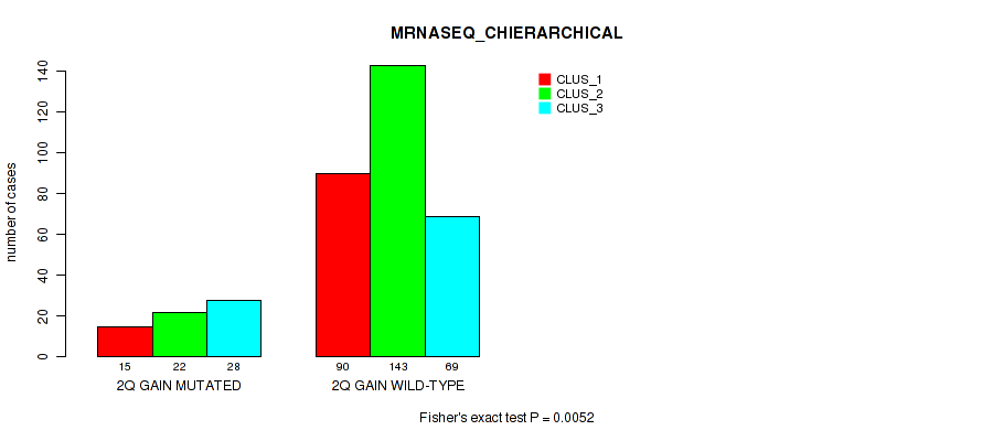 2q gain cnv correlated to 'CN_CNMF', 'METHLYATION_CNMF', 'MRNASEQ_CNMF', 'MRNASEQ_CHIERARCHICAL', 'MIRSEQ_CHIERARCHICAL', and 'MIRSEQ_MATURE_CHIERARCHICAL'.