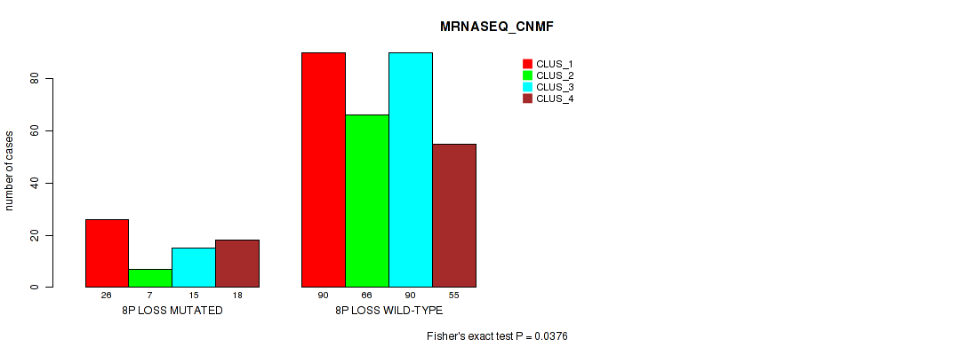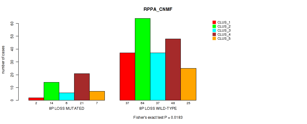 8p loss cnv correlated to 'RPPA_CNMF' and 'MRNASEQ_CNMF'.