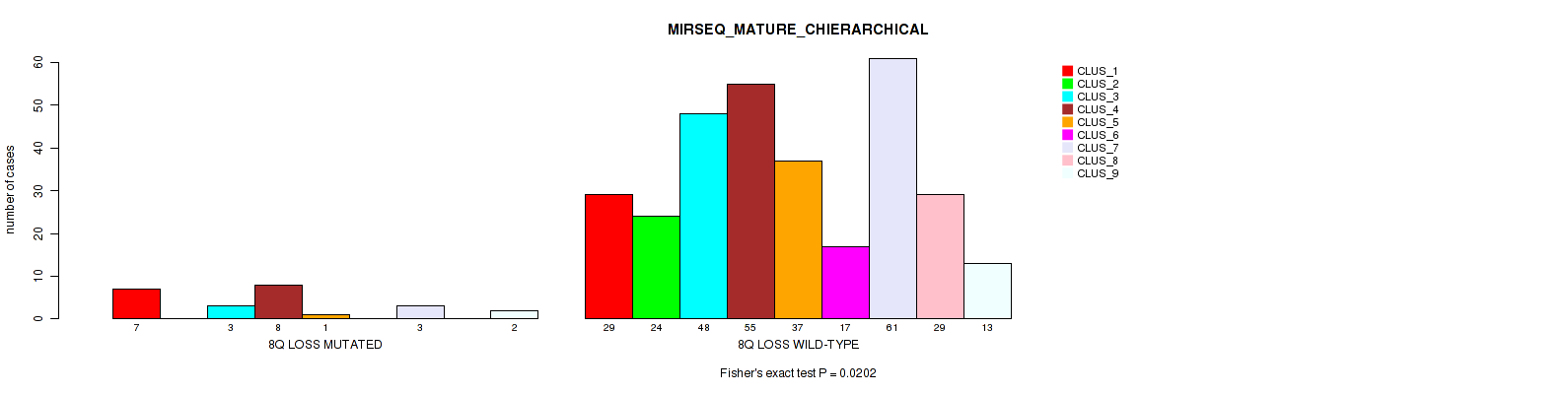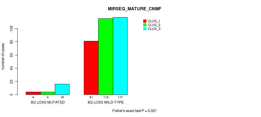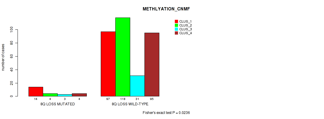 8q loss cnv correlated to 'METHLYATION_CNMF', 'RPPA_CNMF', 'MIRSEQ_MATURE_CNMF', and 'MIRSEQ_MATURE_CHIERARCHICAL'.