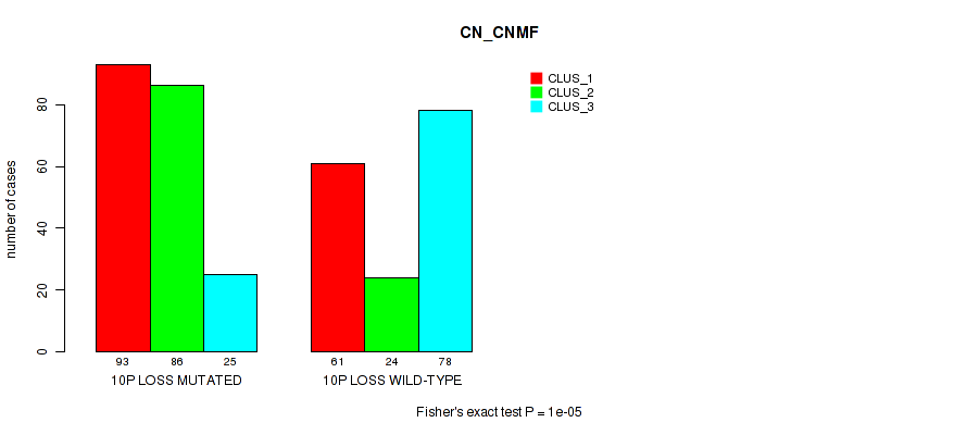 10p loss cnv correlated to 'CN_CNMF', 'METHLYATION_CNMF', 'MRNASEQ_CNMF', and 'MRNASEQ_CHIERARCHICAL'.