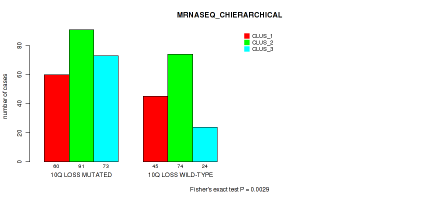 10q loss cnv correlated to 'CN_CNMF', 'METHLYATION_CNMF', 'MRNASEQ_CNMF', and 'MRNASEQ_CHIERARCHICAL'.