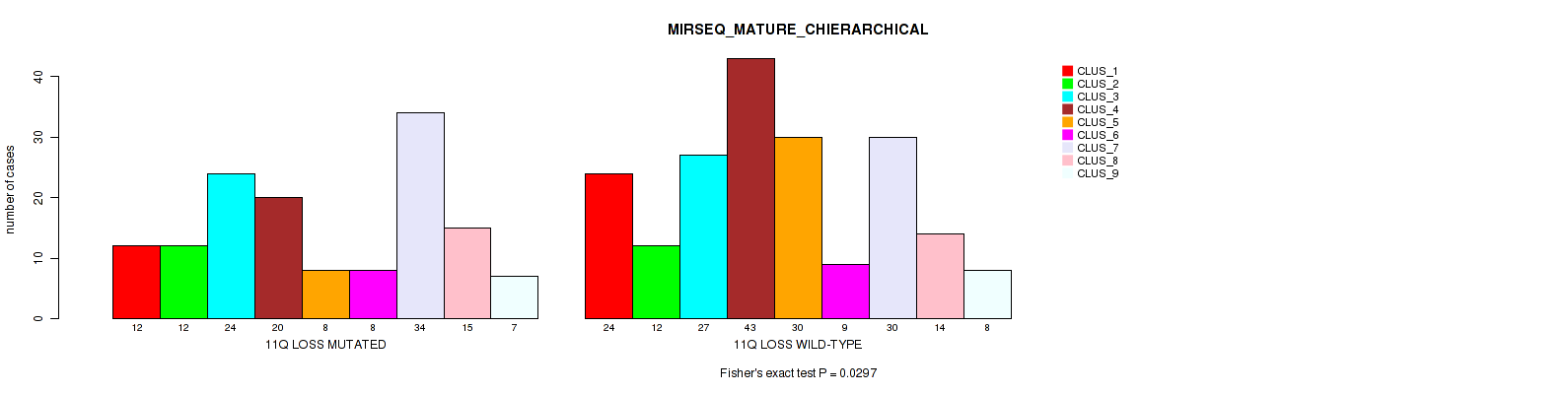 11q loss cnv correlated to 'CN_CNMF' and 'MIRSEQ_MATURE_CHIERARCHICAL'.