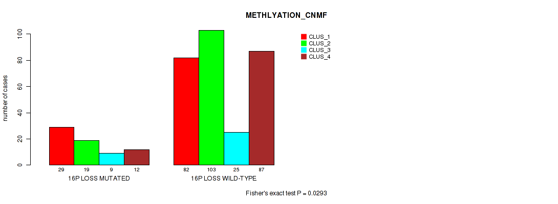16p loss cnv correlated to 'CN_CNMF' and 'METHLYATION_CNMF'.