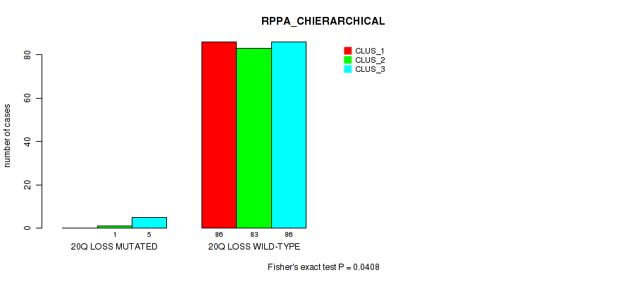 Figure S166. Get High-res Image Gene #78: '20q loss' versus Molecular Subtype #4: 'RPPA_CHIERARCHICAL'