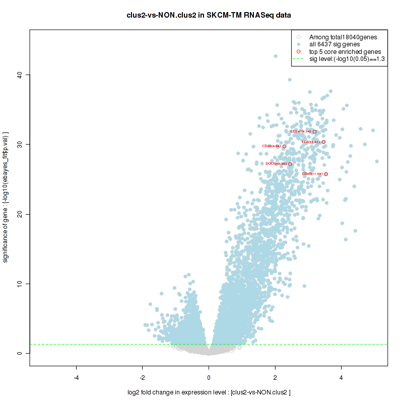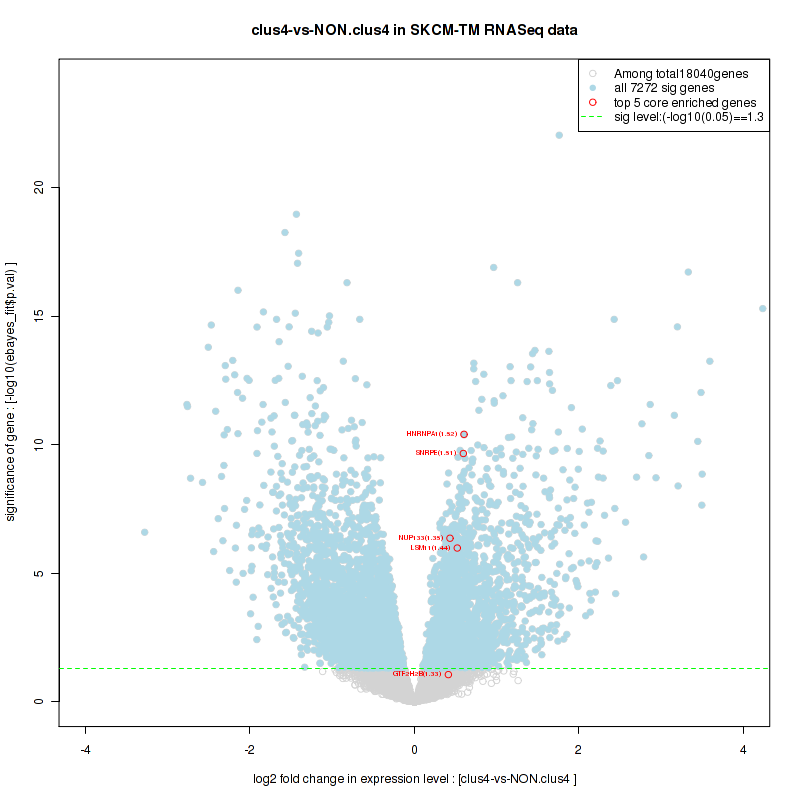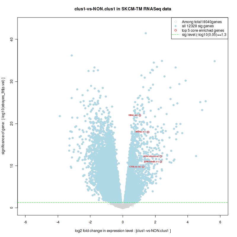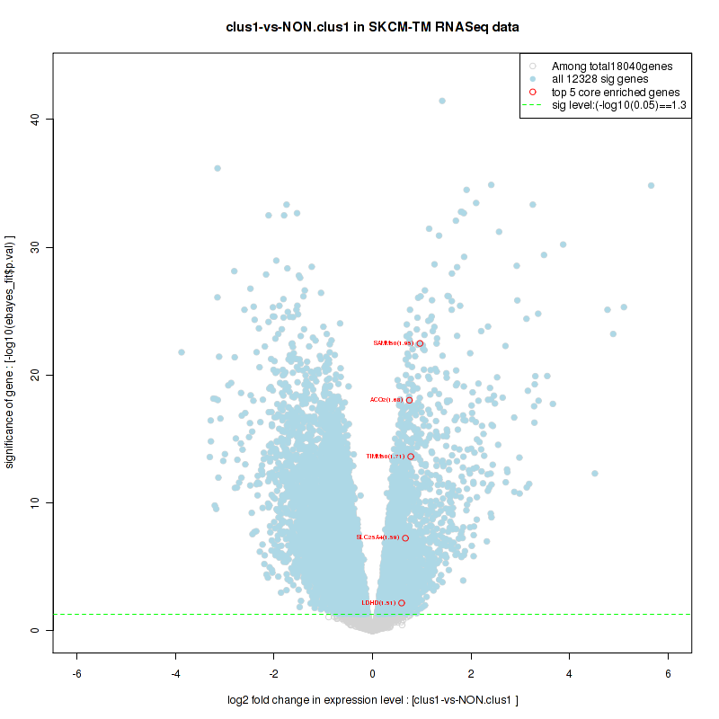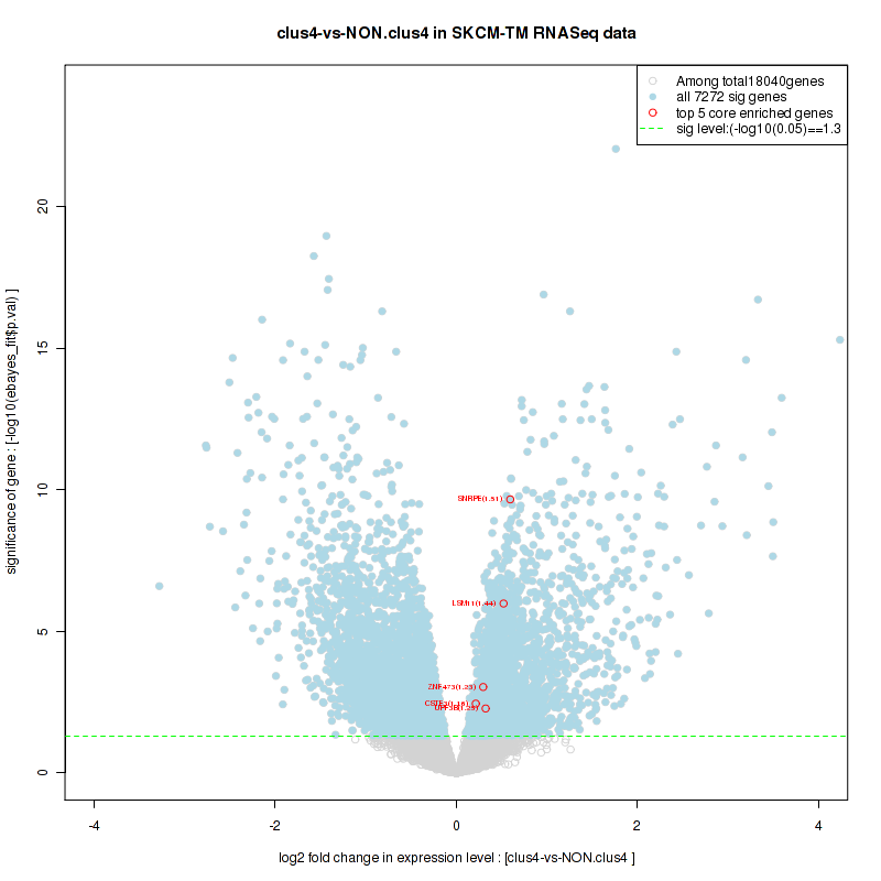 Figure S2.  Get High-res Image For the top 5 core enriched genes in the pathway: KEGG CITRATE CYCLE TCA CYCLE, this volcano plot shows how much they are up/down-regulated and significant. The significance was calculated by empirical bayesian fit