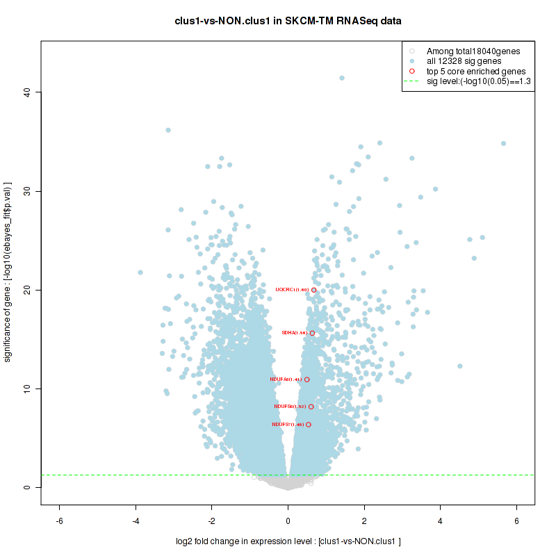 • And common core enriched genes are ACO2, CS, IDH3G, SDHA, SDHB, SDHC, ATP5B, ATP5G1, CYC1, DLST