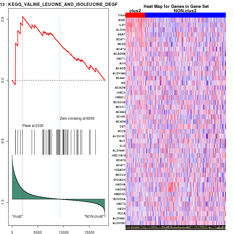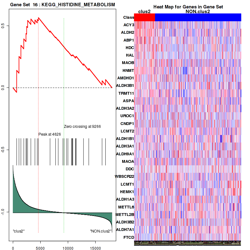 Table S2.  Get Full Table This table shows a Running Enrichment Score (RES) of each gene in this pathway, that is, the enrichment score at this point in the ranked list of genes. All genes are ranked by Signal-to-Noise (S2N), a measure of similarity as default and are used to obtain ES matrix of all genes. In this way, GSEA tool uses expression pattern of not only overlapped genes but also not-overlapped genes to produce ES matrix.