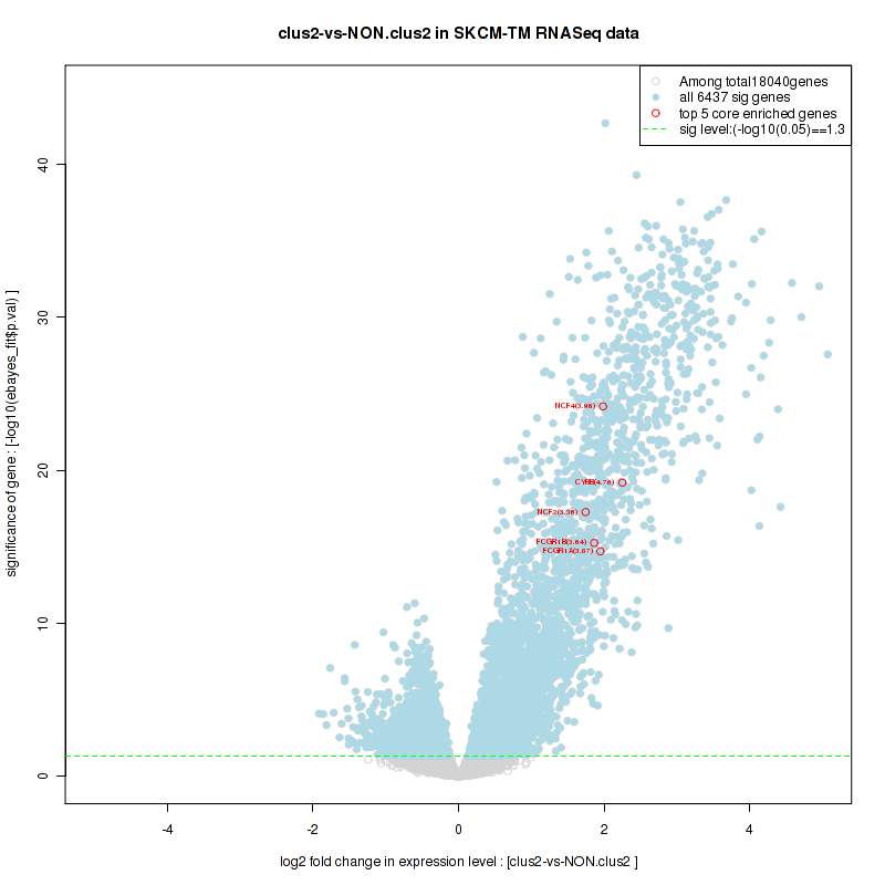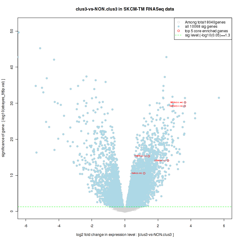 4. Checks if the top core genes are up-regulated or down-regulated.