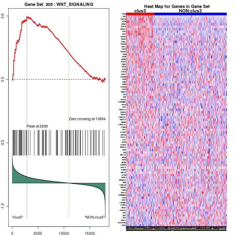 • Top enriched gene sets are KEGG TGF BETA SIGNALING PATHWAY, KEGG ECM RECEPTOR INTERACTION, BIOCARTA ERK PATHWAY, BIOCARTA MPR PATHWAY, WNT SIGNALING, ST INTEGRIN SIGNALING PATHWAY, PID INTEGRIN1 PATHWAY, PID EPHBFWDPATHWAY, PID RET PATHWAY, PID NCADHERINPATHWAY