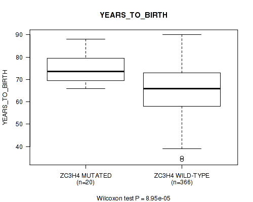 ZC3H4 mutation correlated to 'YEARS_TO_BIRTH'.