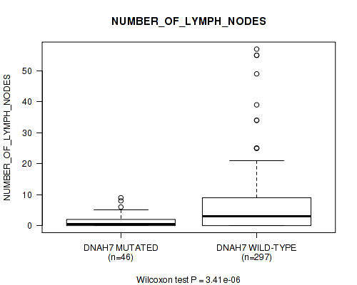 DNAH7 mutation correlated to 'PATHOLOGY_N_STAGE' and 'NUMBER_OF_LYMPH_NODES'.